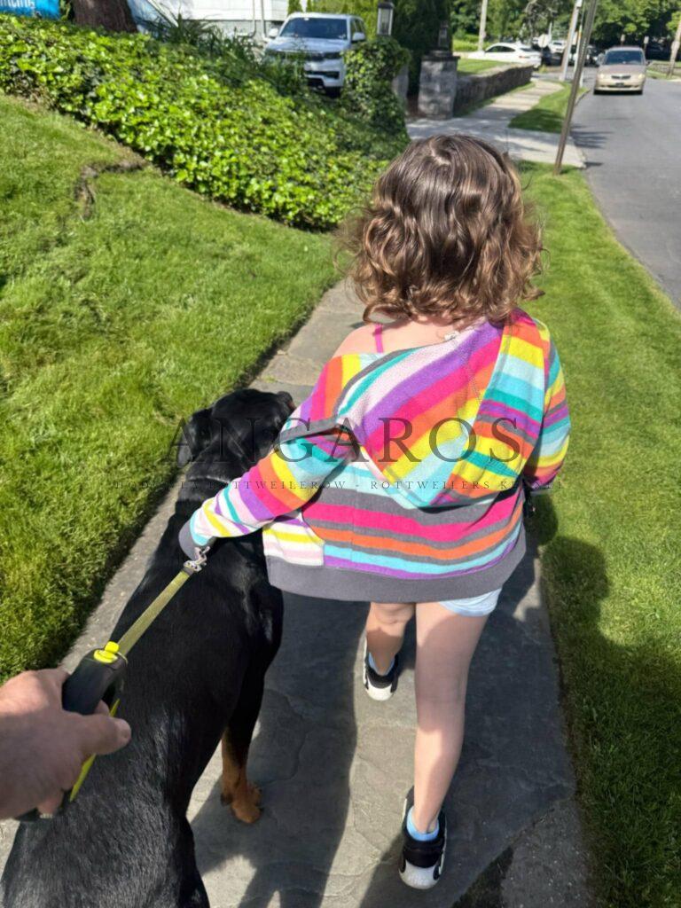 Zosia i VALTO LEX Angaros, wspaniała relacja i prawdziwa miłość. Zosia od małego jest wychowywana z dwoma rottweilerami. Idealny przykład na to, że się da, ale należy pamiętać, że wymaga to pracy i samo się nie zrobi. Każdego psa trzeba wychować i poświęcić na to sporo czasu, jak i nauczyć dziecko jak postępować w codziennym życiu z rottweilerem. Dostaję dużo pytań bo bardzo wiele rodzin chciałaby mieć rottweilera, a często nie zdają sobie sprawy, że wychowanie wymaga sporo pracy i poświęcenia czasu. Tak więc jeśli szukacie psa, który sam bez niczego będzie wychowywał się przy dzieciach, to nie jest rasa dla Was, jest zaś jesteście świadomi, że wychowanie to czas spędzony na szkoleniach (często sobota i niedziela od samego rana), konsekwencja, socjalizacja ( pokazywanie dorastającemu szczenieciu świata tj. autobusy, pociągi, duże miasto etc) i co ważne Wasza rodzina również, to bedziecie mieli wspaniałego przyjaciela, członka rodziny i obrońcę.