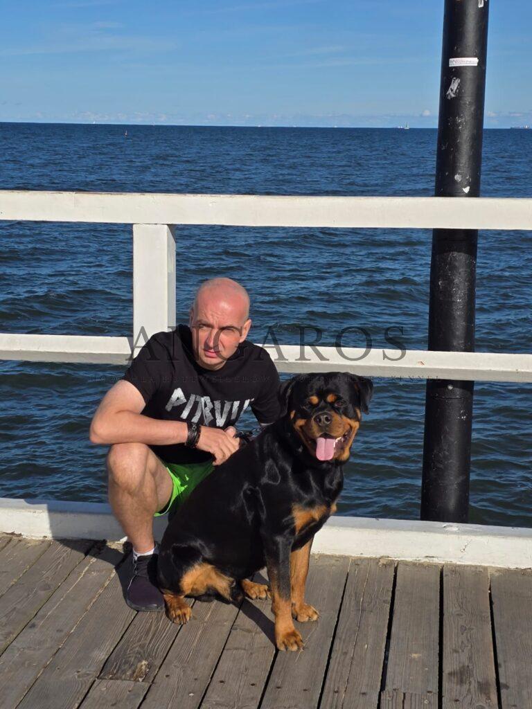 VALENTINO Angaros na wakacjach. Odpowiednio wychowany rottweiler może z nami podróżować nawet na tzw. koniec świata. VALENTINO wraz ze swoimi właścicielami mieszka w Legnicy.